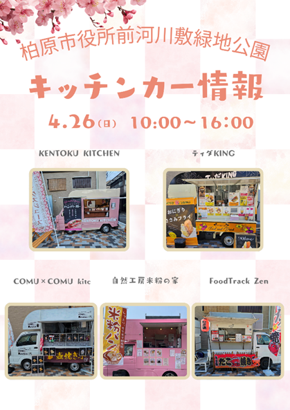 柏原市役所前河川敷緑地公園ステージキッチンカー情報!