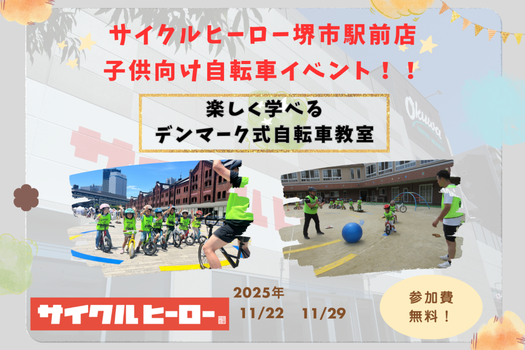 サイクルヒーロー堺市駅前店恒例のデンマーク式自転車教室イベントを開催いたします!
