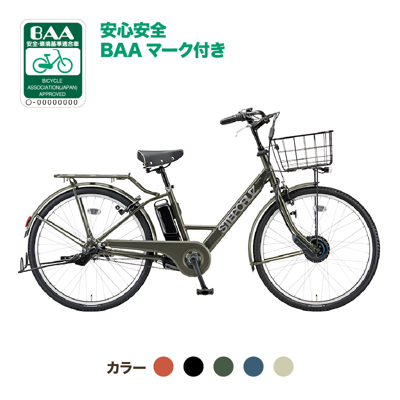 国産フレームで丈夫な自転車。充分なバッテリー容量なのに小型で扱いやすい!小型の自転車は上り坂楽々!!駐輪場でも当たりにくいスリムバスケットが便利です!